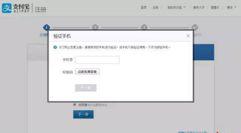 第四步:為了防止惡意競爭,需要填寫手機(jī)號碼來獲取驗證碼(該手機(jī)號碼只做驗證使用,不作為綁定號碼。),完成后點擊下一步。